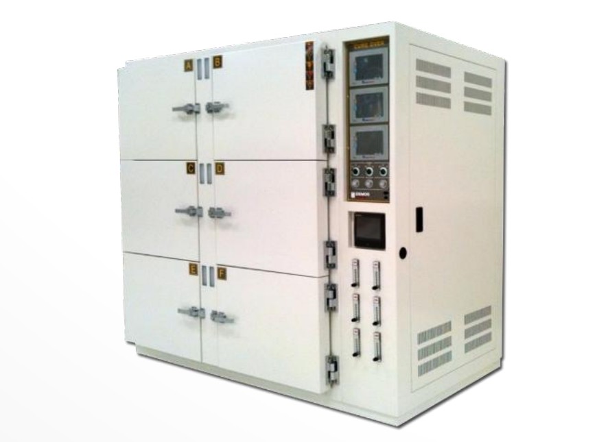 Lò sấy công nghiệp Enex loại 2, 4, 6 ngăn — ứng dụng cho epoxy cure, silicone cure. Hệ air cooling làm mát nhanh, controller touch screen, recording SD.