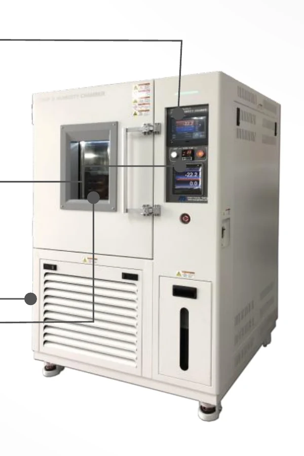 Buồng thử nhiệt độ và độ ẩm tiêu chuẩn do Enex Science (Hàn Quốc) sản xuất — dải −40 → +150 °C, độ ẩm 20–98 % RH. Đạt chuẩn KS/CE/UR, controller màn hình cảm ứng 5.7″, cửa quan sát không đọng sương, PID riêng theo từng đoạn.